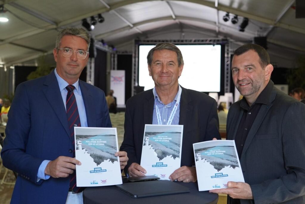 Photo de gauche à droite : Yannick Moreau, maire des Sables d’Olonne et Président sortant de l’ANEL, Erven Leon, maire de Perros-Guirec et Président de Vigipol, Jean-Charles Orsucci maire de Bonifacio et actuel Président de l’ANEL. Credits photos ANEL